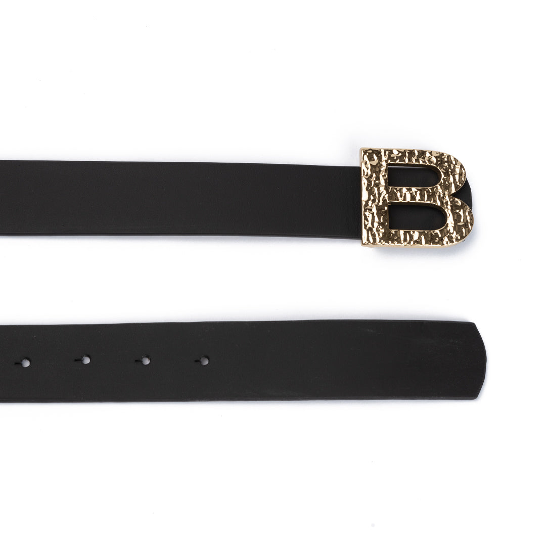 Crni kaiš Porto - Reljefasta toka / Zlato / 225