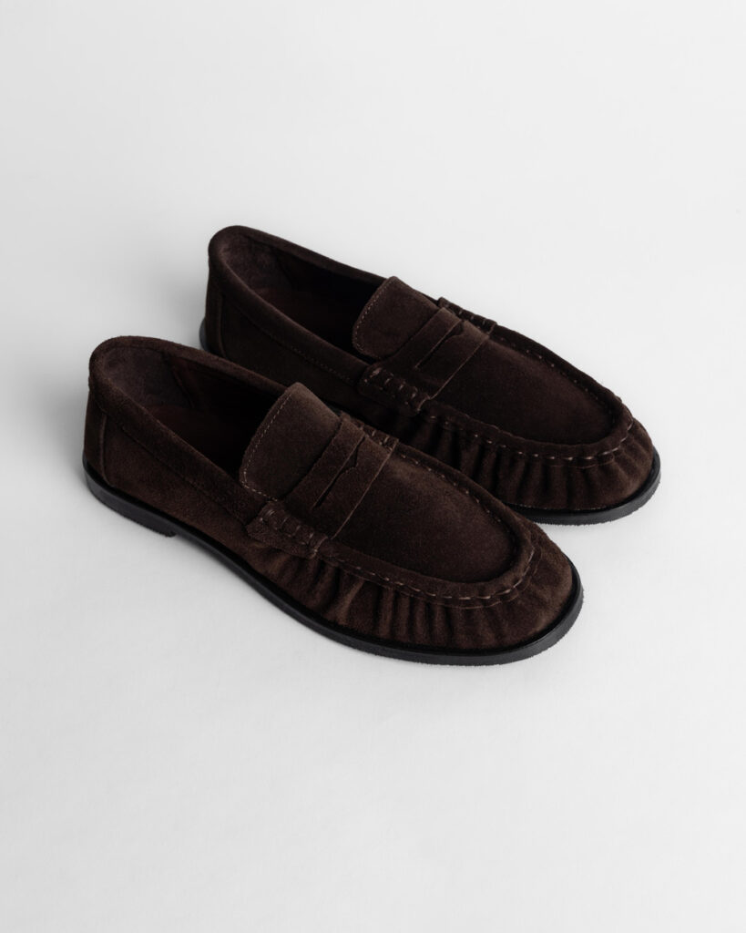 Klasične ženske mokasine modernog izgleda, izrađene od kvalitetne prevrnute kože u toploj kamel nijansi. Ovaj model kombinuje bezvremenski dizajn sa trendi, naglašenim đonom koji daje urban i savremen izgled.